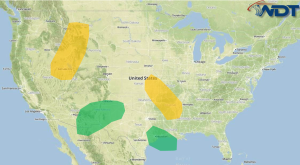 General thunderstorms with small hail and strong winds will be possible Thursday from portions of the Central Plains to the Gulf Coast. Strong to severe thunderstorms will be possible for portions of the Great Basin and Northern Rockies this afternoon and evening. Across the Southwest, rain and thunderstorms will continue with flooding likely.