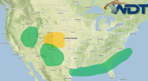 High pressure will build across the Eastern US behind a cold front moving southward. Showers and thunderstorms will continue through the morning and afternoon as the front approaches the Southeast and Gulf of Mexico. No severe impacts expected. To the west, an area of low pressure over the Central Rockies will allow isolated to scattered showers and thunderstorms for the Central Rockies. While widespread severe weather is not expected, a few thunderstorms could become severe by late afternoon. Small hail and damaging winds will be the main concerns. Excessive rainfall will be possible across the Great Basin region, Western Colorado, Southern High Plains of New Mexico, and West Texas. 1-1.5" of rain may fall through tonight. Flooding and runoff is expected for parts of Southeast New Mexico.
