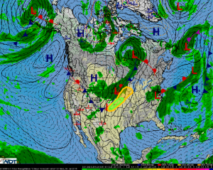 Across the Southern Plains through the Midwest, scattered showers and thunderstorms will be possible in the late afternoon and evening over the Missouri Valley and South Central Plains. Heavy rain will be possible, with some areas picking up 2-3 inches of rain. Flash flooding will be possible across this region during the evening.