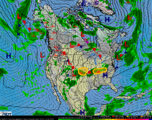 Strong to severe thunderstorms are possible today across the Central High Plains today as a lee trough is expected to form along the Front Range. This will aid in bringing warm, moist air into the Plains. Though upper level support is weak, there is sufficient instability and lift for thunderstorm development during the afternoon hours. A few supercell thunderstorms will be possible. If any thunderstorms do become severe, large hail, damaging winds, lightning, and flooding will be possible.