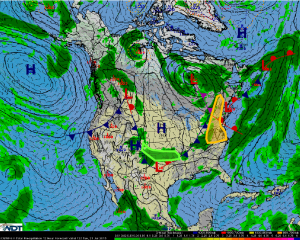 Northeast & Mid-Atlantic:An upper level trough combined with a cold front at the surface will move eastward into the Northeast and Mid-Atlantic regions today. Thunderstorms are forecast to develop and intensify across this region during the afternoon and early evening hours. Conditions are not favorable for widespread severe storms, but some strong to marginally severe storms will be possible. Gusty winds and hail will be the main threats.