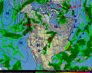 Showers and thunderstorms will be possible along the Mid Atlantic and Southeastern coasts throughout the day on Thursday. A weak low and ample moisture will begin to move inland which should allow for widespread showers and pockets of heavy rain. Rainfall amounts of 0.5 to 1.0 inch is possible throughout the region with locally higher amounts in excess of 2 inches possible with strong storms.